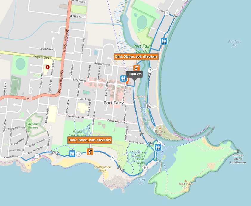 Our multi loop course showcases the best of picturesque Port Fairy. This includes the historic streets, rugged coastline, beautiful wharf and the pristine riverfrontage that Port Fairy is famous for. This course is all killer, no filler. With World-Athletics-AIMS certification our new runner friendly course is wider, car free and with no stairs allowing for faster times and easier pacing whilst maintaining the amazing views and atmophere that Port Fairy is famous for.